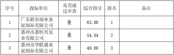 第二標(biāo)段中標(biāo)供應(yīng)商名稱:廣東聯(lián)星瑞業(yè)水泥制品有限公司;中標(biāo)報價下浮率:1.00%。