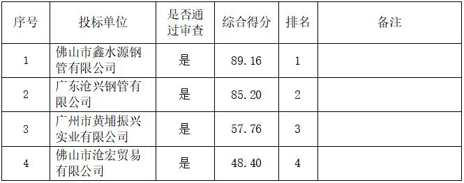 第三標(biāo)段第一中標(biāo)供應(yīng)商名稱:佛山市鑫水源鋼管有限公司;中標(biāo)報價下浮率:1.90%。第三標(biāo)段第二中標(biāo)供應(yīng)商名稱:廣東滄興鋼管有限公司;中標(biāo)報價下浮率:2.00%。