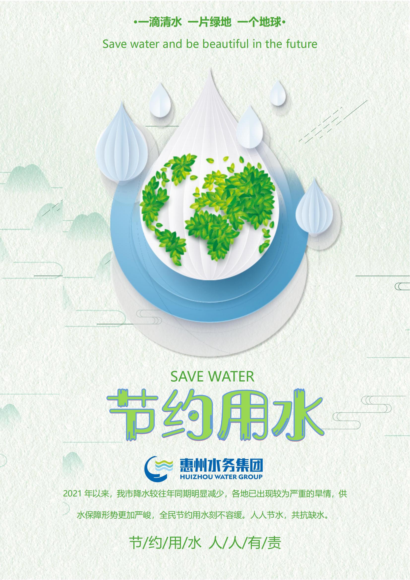 親愛的同事們,“人人節(jié)水,共抗缺水”。讓我們積極行動起來,以實際行動支持全市節(jié)水工作,從自身做起,從現(xiàn)在做起,珍惜每一滴水,為建設(shè)資源節(jié)約型、環(huán)境友好型的社會貢獻(xiàn)自己的力量!