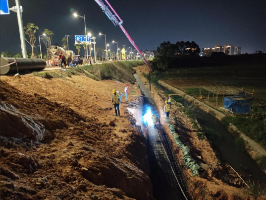 項(xiàng)目施工工期僅為6個(gè)月,工期十分緊張,公司項(xiàng)目部充分發(fā)揮“鐵軍精神”,科學(xué)組織施工,實(shí)施“黨建+”模式,成立“黨員突擊隊(duì)”和“青年突擊隊(duì)”,推進(jìn)黨建工作和項(xiàng)目施工深度融合,將黨建優(yōu)勢(shì)轉(zhuǎn)化為現(xiàn)實(shí)生產(chǎn)力,僅用55個(gè)晝夜就完成了關(guān)鍵節(jié)點(diǎn)任務(wù)。因此,這項(xiàng)工程也被項(xiàng)目部上下稱為“星光工程”,他們用焊花作星、以混凝土為墨,在夜色中打造了一條提升日供水能力達(dá)2萬立方米的城市主動(dòng)脈。