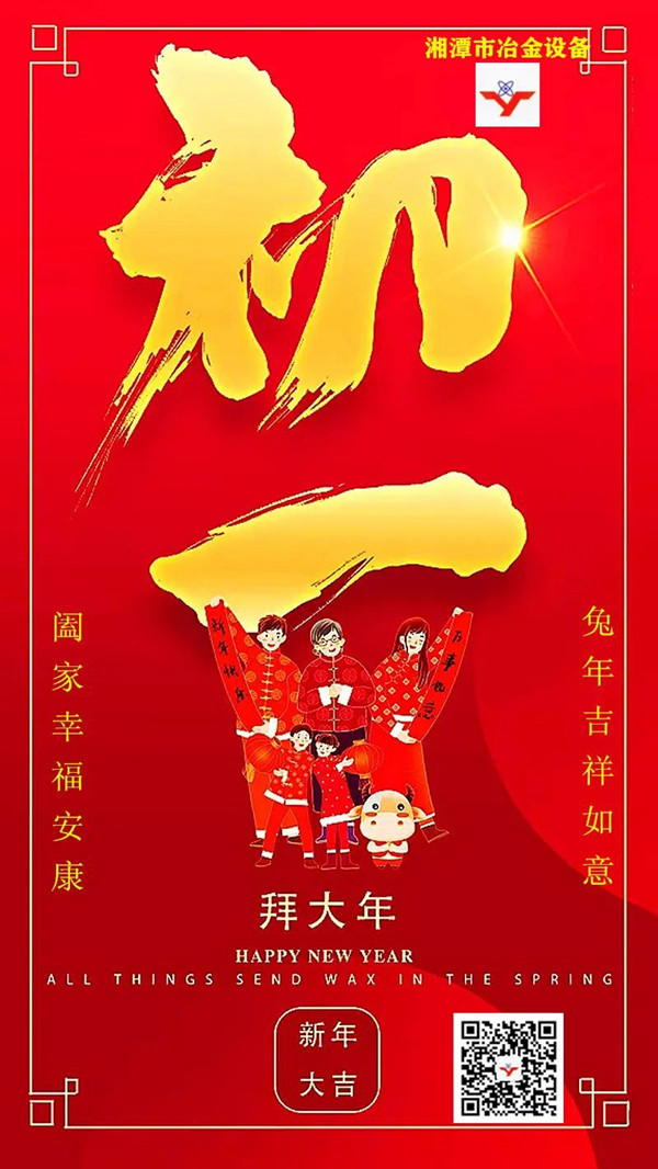 金虎呈歡辭舊歲,福兔躍起迎新春。 湘潭市冶金設(shè)備發(fā)展、成長的每一步,都凝聚了各位客戶、合作伙伴和各界朋友的關(guān)懷、信賴與支持,以及全體湘冶家人的辛勤耕耘與打拼。充滿機(jī)遇與挑戰(zhàn)的2023,我們將信心滿懷,堅守初心,沿著既定的宏偉目標(biāo),再譜新篇章。 值此兔年春節(jié)到來之際,國內(nèi)冶金礦山設(shè)備非標(biāo)定制專家——湘潭市冶金設(shè)備制造有限公司恭祝大家:春節(jié)團(tuán)圓美滿!闔家幸福安康!在大展鴻兔、兔飛猛進(jìn)的2023年里,好運(yùn)常在!笑口常開!開心每一秒,快 樂每一天,幸福連連,健康久久!
